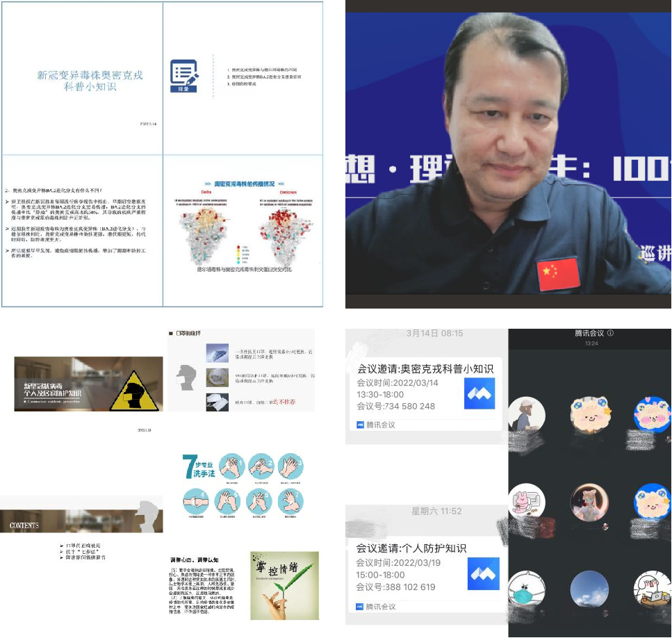 目前,线上课堂已开展三期:(一)“新冠变异毒株奥密克戎科普小知识”,详细介绍本次疫情奥密克戎亚型变异毒株的特点、传播途径、感染症状和抗原检测机制。(二)“新型冠状病毒个人及居家防护知识”,与学生分享隔离期间注意事项、洗手消毒七步法、如何保持良好身心状态等。(三)组织学生观看学生工作部举办的“思想·理论·人生:100讲”——疫情防控名师线上大讲堂系列巡讲第七讲活动。受葡京娱乐城