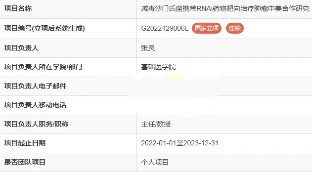 生物医学科学系主任张灵教授的2022年度国家外国专家项目“减毒沙门氏菌携带RNAi药物靶向治疗肿瘤中美合作研究”获得科技部批复立项。项目聘请美国马里兰大学Dhan V. Kalvakolanu教授为学生指导科研工作,共合作发表了中科院一区SCI论文1篇,二区论文1篇。同时,张灵教授邀请Dhan V. Kalvakolanu教授参加了葡京娱乐城