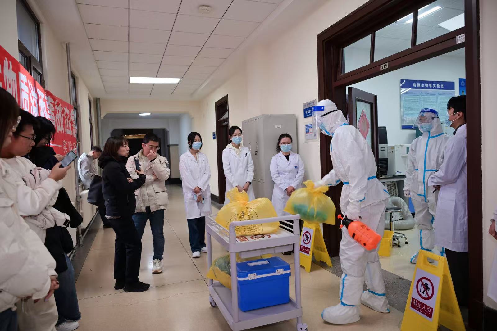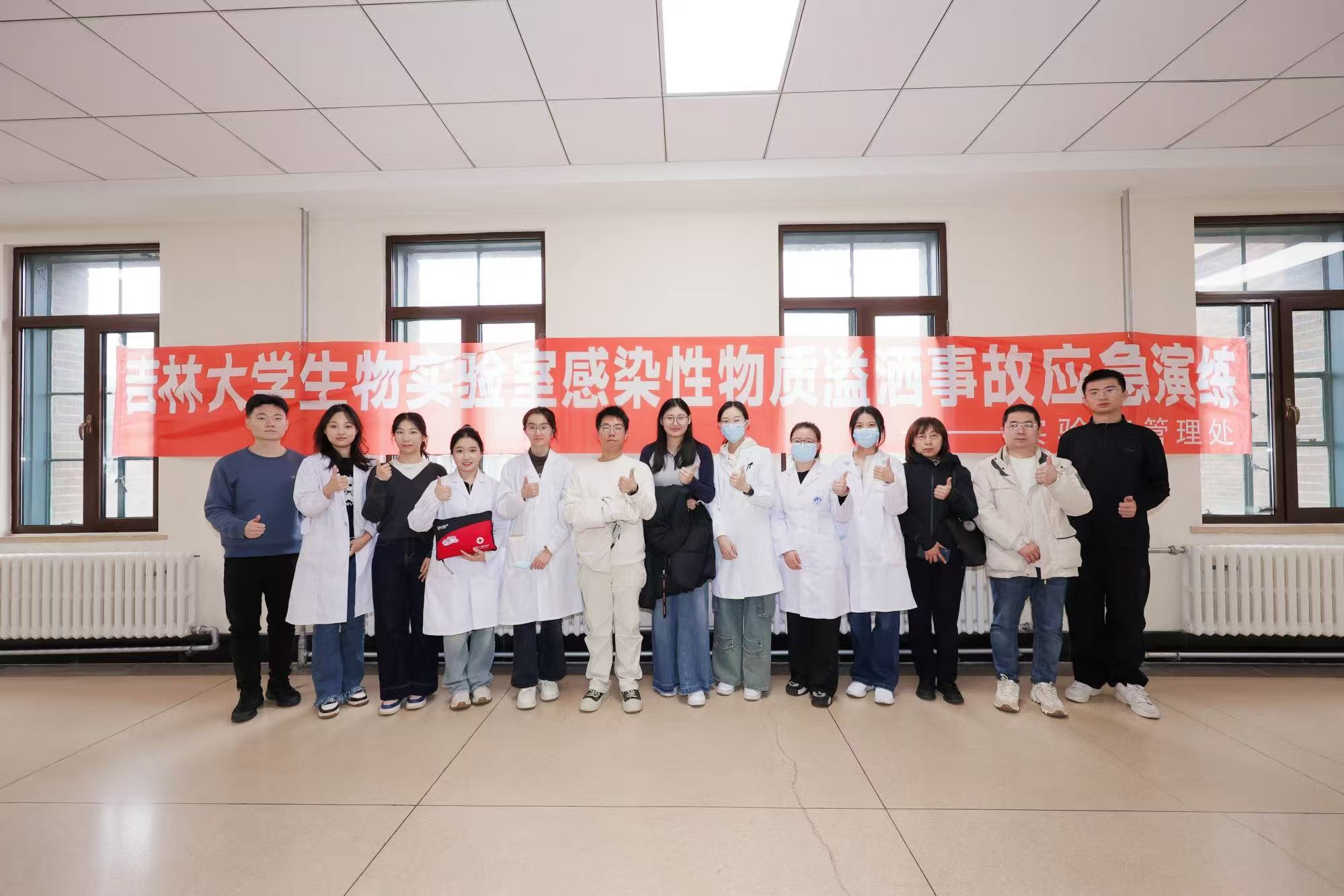 同时为加强实验室安全管理,提升师生实验室安全技能,使师生掌握实验室相关应急处置的正确措施,普及实验室安全知识,根据吉林大学第四届实验室安全文化月活动总体安排,在基础楼315举办生物实验室感染性物质溢洒事故应急演练。