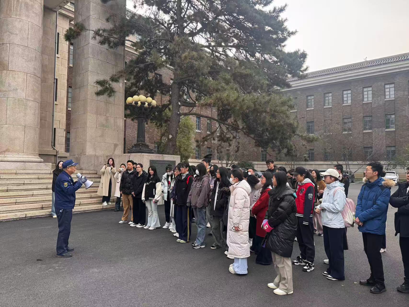领导班子、研究生及本科生参与活动,邀请新民校区保卫处安志成老师现场指导。