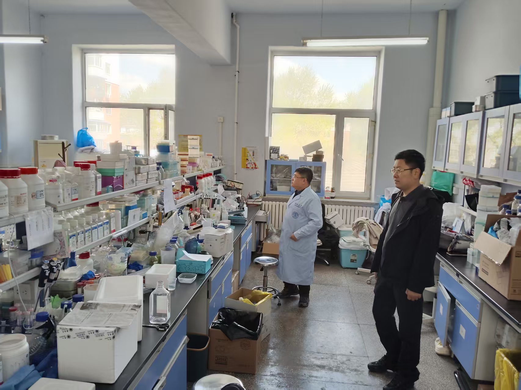 科研实验室、实验动物中心、基础医学教学实验中心等场所进行了实地踏查,重点对危化品的分类、储存及使用情况,高温高压仪器设备使用情况,水电气使用情况,消防器材配备情况,消防安全疏散通道安全情况,实验废弃物处置情况等进行逐一检查,对检查发现的隐患和问题进行现场反馈。
