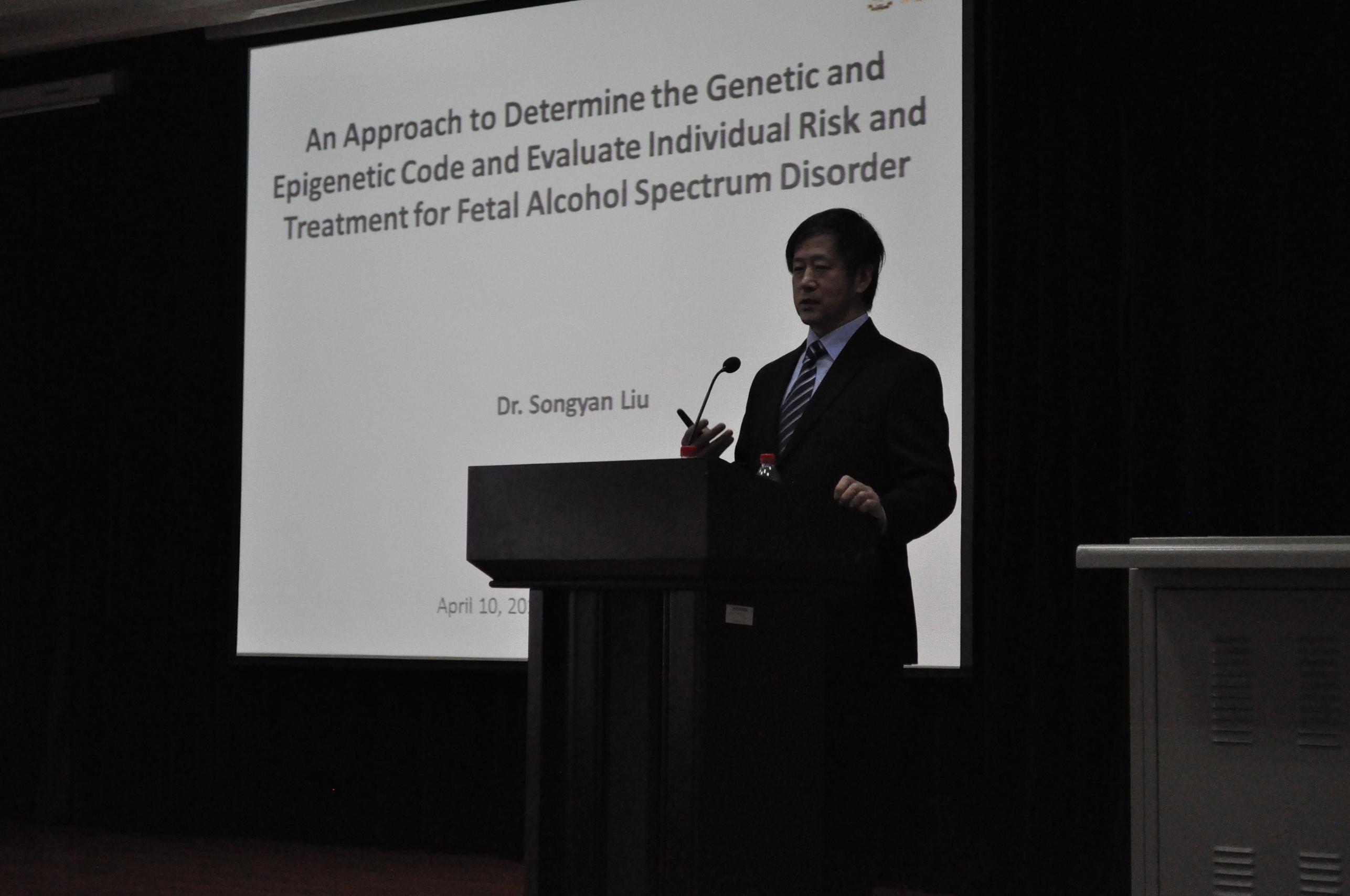来自曼尼托巴大学细胞生物研究所的刘松岩教授介绍了他领导的课题组正在进行的研究“胎儿酒精谱系障碍(FASD)遗传与表观遗传的确定以及个体风险评价和治疗方法”。刘松岩教授首先介绍了酒精毒性、胎儿酒精谱系障碍(FASD)以及酒精中毒与维生素A缺如的关系,在阐述研究FASD遗传与表观遗传特征后,刘松岩教授介绍了自己课题组如何开展遗传学差异的确定。