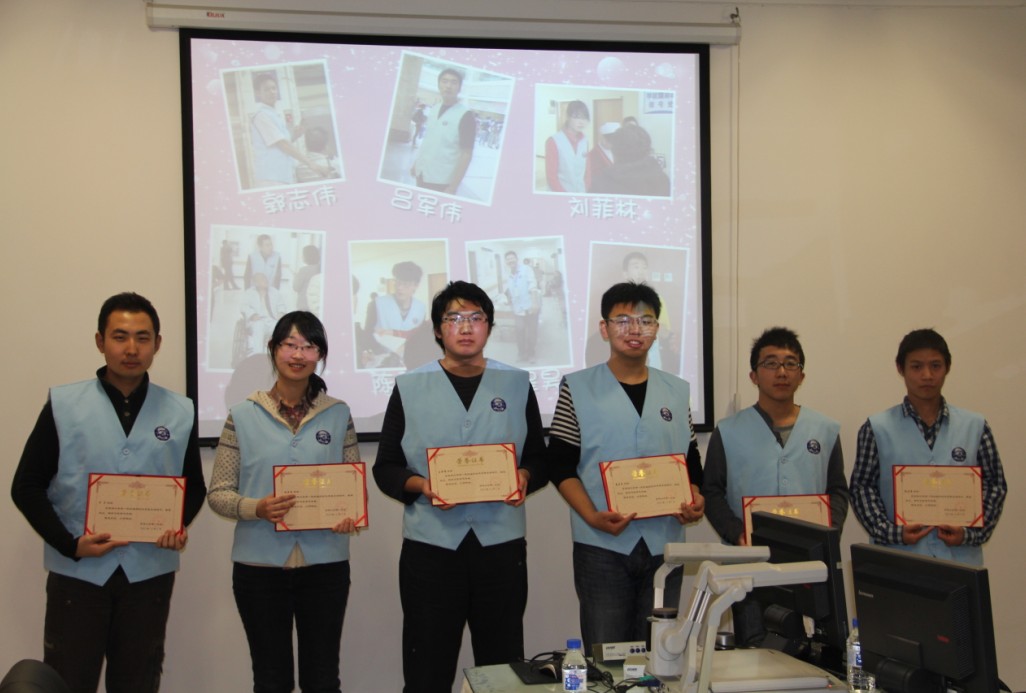 志愿者们获多项荣誉,其中刘菲琳、严宇、陈雪东、高星昊获得优秀志愿者之“实力的绽放”奖;杨营营、李常有、张帅获优秀志愿者之“奉献的欢乐”奖;杨珮玉、吴灵羽、王颖获优秀志愿者之“最美的笑容”奖,耿任、史可、齐远获得优秀志愿者之“责任的担当”奖,同时白求恩青年志愿者协会获“优秀团队”称号。