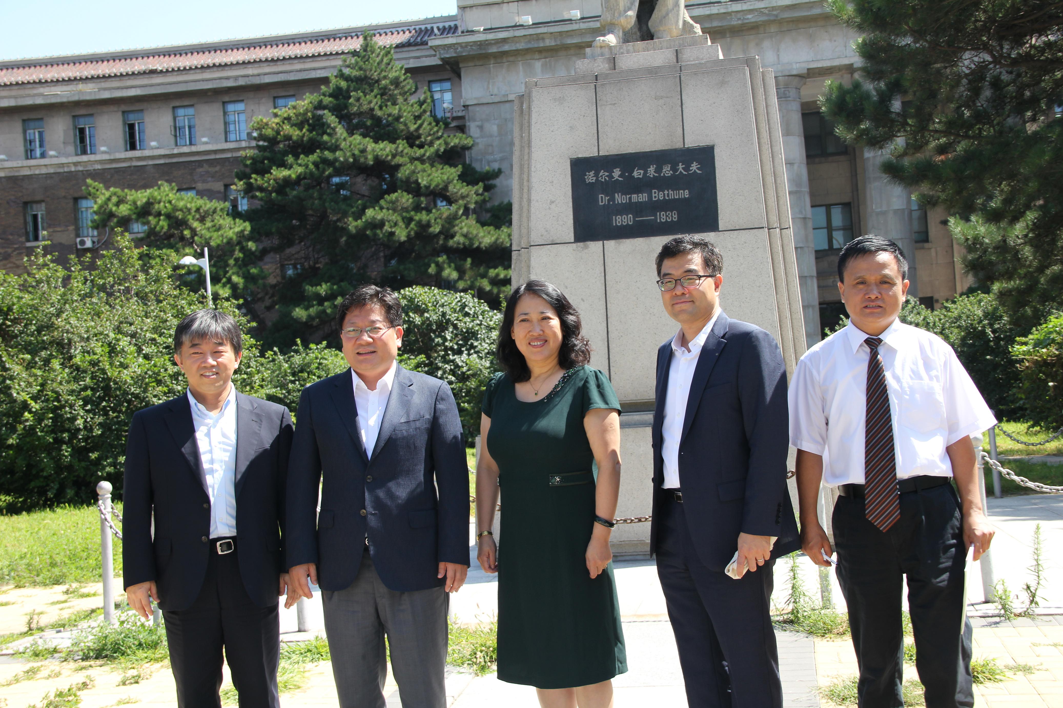 院长姜大熙教授、副院长金圣峻教授和医学科长朴雄洋教授一行三人访问白求恩医葡京娱乐城