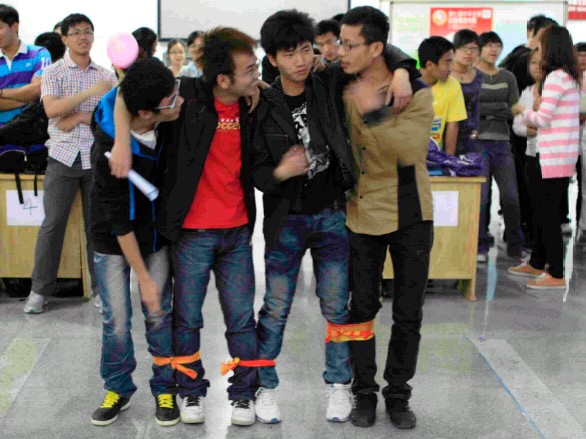 的学生会副主席刘佳明对活动的顺利举行表示祝贺,并希望两院的友谊能够以此为基础更上一层楼。接下来的踩报纸活动则更为精彩,报纸共折叠三次,各个队伍都集思广益以“叠罗汉”、“金鸡独立”等方式顺利完成。最后的穿越从林项目,各组队伍队员手拉手,在两分钟内轮流蹲下身子,通过一定高度的绳子,此环节使整次活动的气氛达到最高点。活动的最后,白求恩医葡京娱乐城