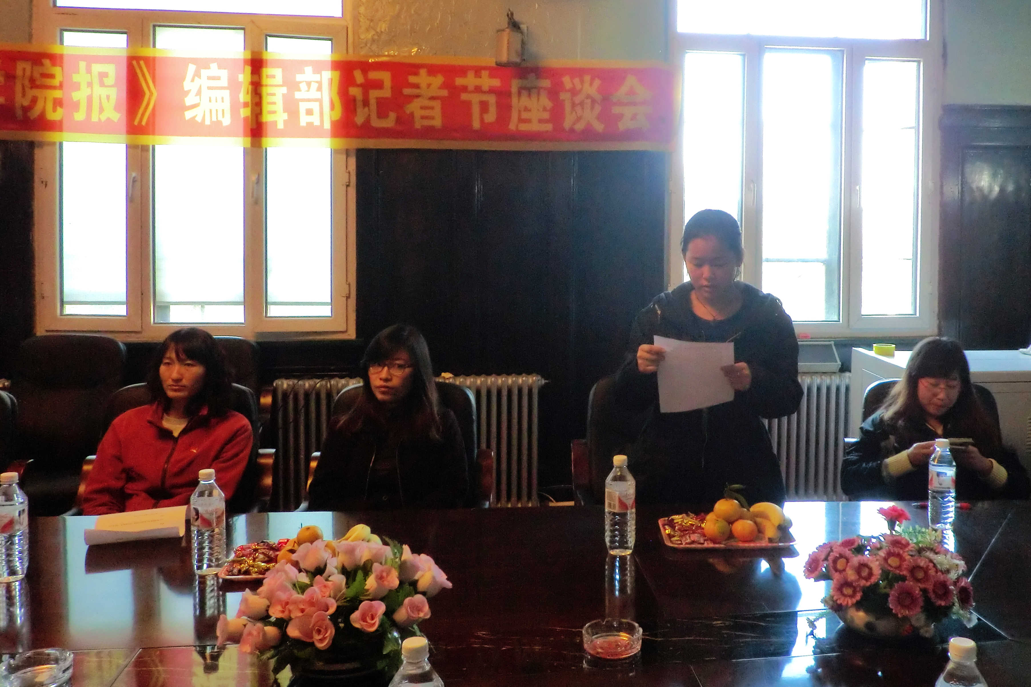 对外宣传上起到的突出贡献表示感谢。她强调学生记者要妥善处理学习与工作间的关系,在活动中取得经验,在历练中提升自己。座谈会在轻松愉快的氛围中结束。(学生记者 王宗启)