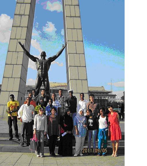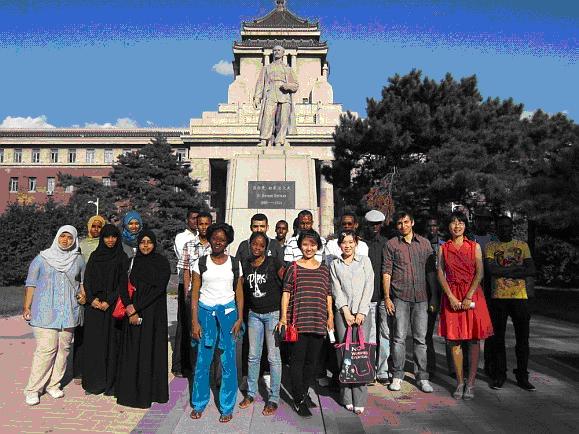 办公楼为起点留学生们参观了校园及周边的环境,整个过程留学生们热情高涨,气氛融洽,笑语不断。讲解人秉着既不忽视生活细节又普及校园文化的原则,不但对沿途的超市,药店,医院等建筑进行说明,也为大家讲解了校园内的设施文化历史和学校的骄人成绩,如基础楼前的白求恩像等,还对长春的天气,景点,商业街,美食文化等也都进行了一一介绍,同学们兴趣盎然,认真倾听,对这次校园之旅充满期待,并不时提出自己的疑问,讲解人也尽量提些问题让大家来回答以提高同学们的积极性,使气氛更加热烈,尤其是在文化广场,同学们对广场四方的塑像都很好奇,不停的问着它们都代表着什么含意,兴趣浓厚。很多同学留影纪念,感叹不已。