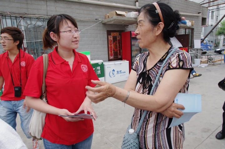 7月7日13时,白求恩医葡京娱乐城 暑期社会实践小分队走入普阳街道,开展了“进入社区,服务百姓”志愿服务活动。葡京娱乐城 团委书记夏燕来、辅导员魏宇航参与了此次活动。