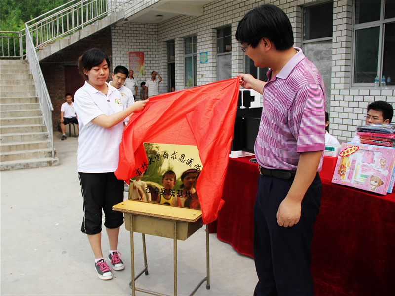 与唐县团委举行了大学生社会实践基地揭牌仪式及捐赠仪式,将全院同学捐赠的电脑、文具、常用药品等捐赠给了白求恩希望小学,送上了对孩子们的祝福和希望。