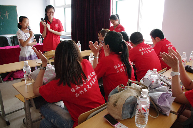 舞蹈团团长曲垠梦带领大家做游戏。在两个小时的活动中,同学们为孩子们普及了一些生活中的医学知识;通过“传话”游戏,帮助孩子们提高对英语的兴趣;通过“击鼓”“抽号”等方法让大学生与孩子们一起进行才艺表演,精彩的《大头儿子小头爸爸》、搞笑的《小燕子》等节目为本次活动画上了圆满的句号。