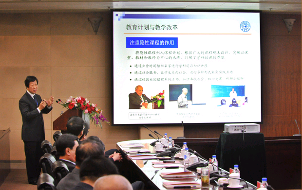 院长李玉林代表吉林大学作认证工作汇报。他围绕培养具有现代意识、国际视野、创新能力的白求恩式的卓越医学人才的目标,重点汇报了吉大在教育计划与教学改革、学生成绩评定与教育评价、学生与教师、教育资源与开放办学及科学研究与教学等方面开展的工作。