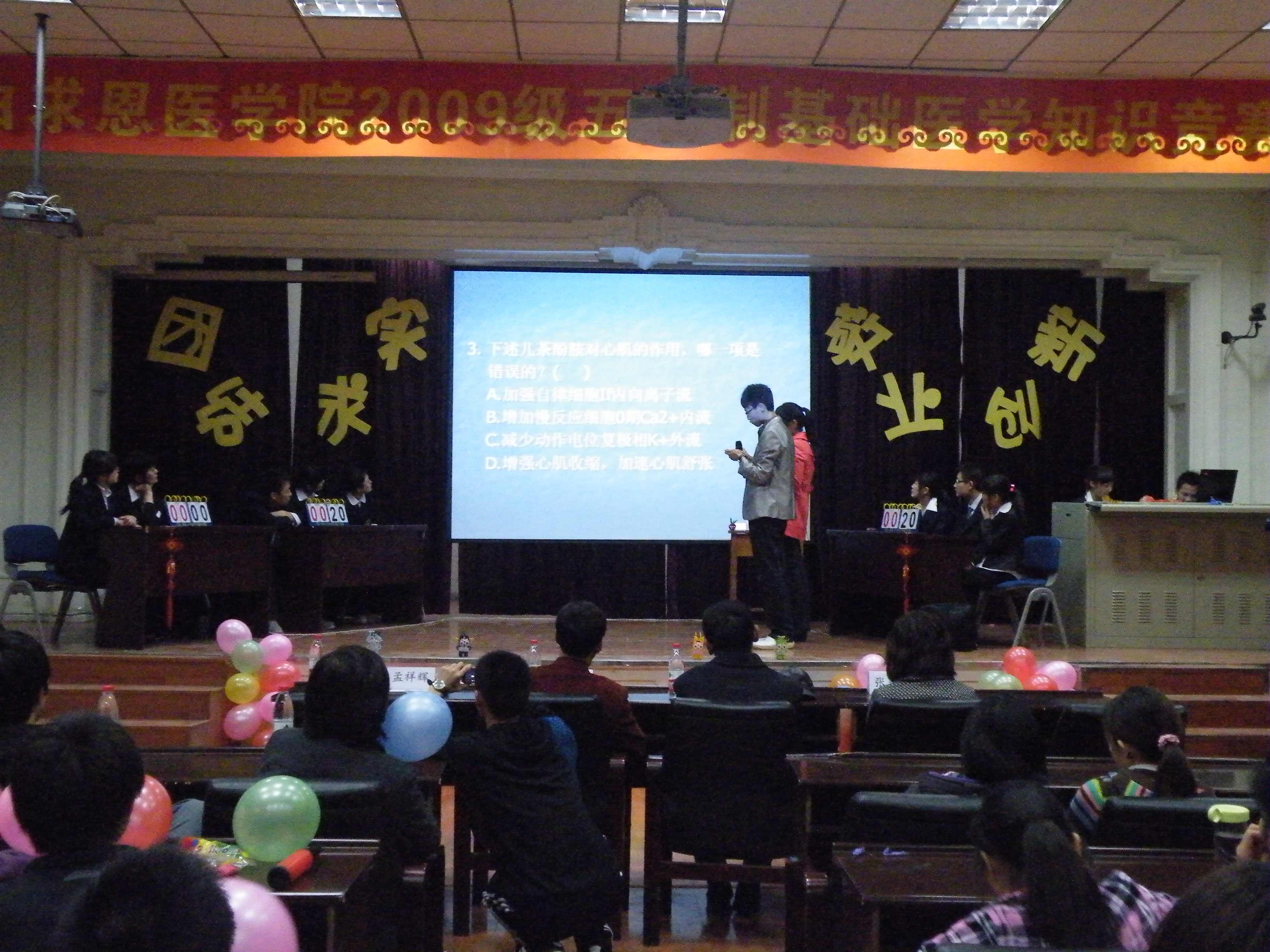 2009级五年制举办,以“团结求实,敬业创新”为主题,比赛内容广泛丰富,涵盖了组织胚胎学、局部解剖学、生理学、生物化学的知识。