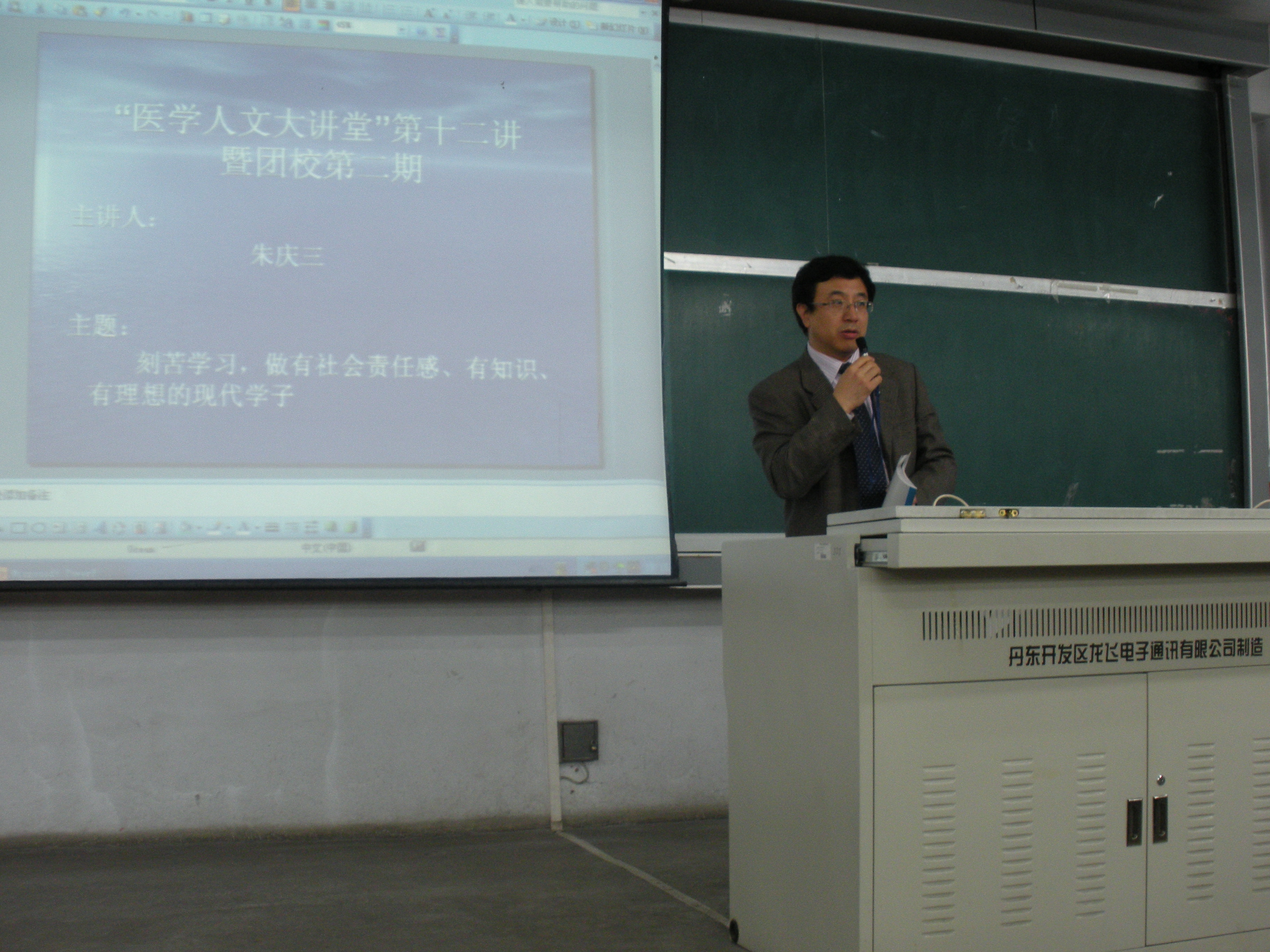 “医学人文大讲堂”第十二讲暨团校第二期讲座在新民校区第一教学楼1101教室进行。白求恩第一医院骨科疾病诊治中心主任,脊柱外科主任,医学博士,博士生导师朱庆三教授应邀担任本次讲座的主讲人。本次讲座以“刻苦学习,做有社会责任感、有知识、有理想的现代学子”为主题。