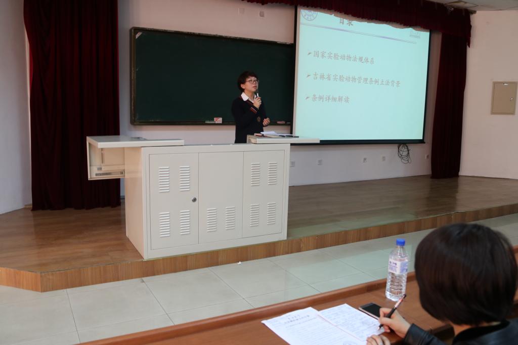 讲座中,王丽教授和苏静副教授分别做了关于实验室生物安全和吉林省实验动物管理条例宣贯的报告。两位教授从自身实际出发,向同学们说明了实验室安全的重要性,告诫同学们一定要严守安全管理条例,要为可能出现的严重后果负责。