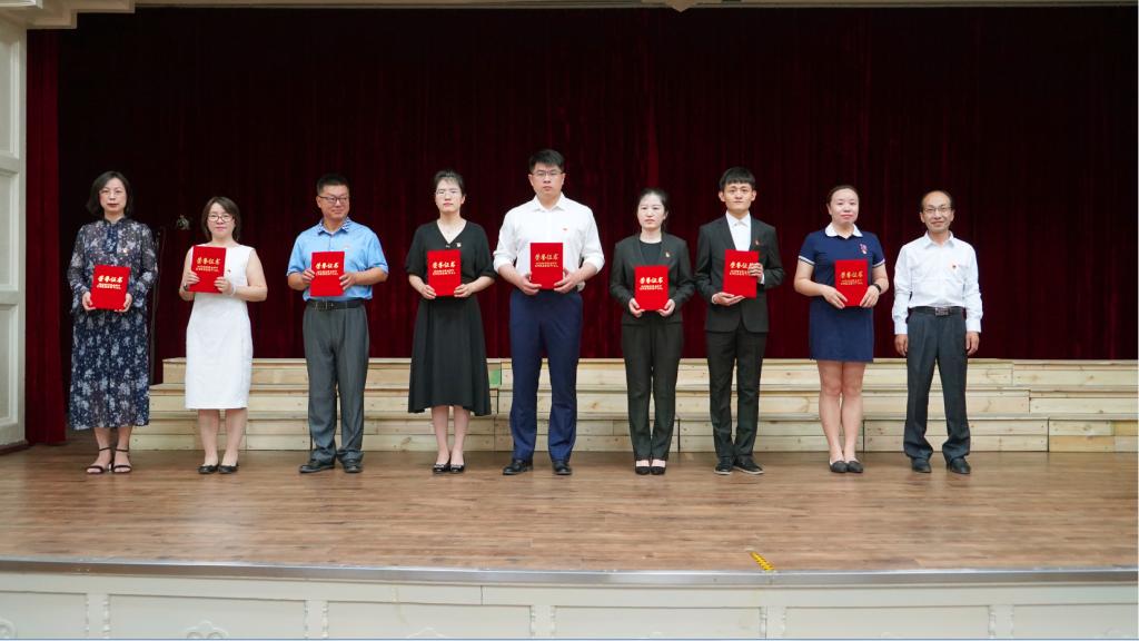 党委书记郑爽和副院长刘海岩、李洪岩分别为受表彰的集体和个人代表颁奖并合影留念。何旭教授和单奕迪同学分别代表受表彰的优秀党支部书记和优秀党员讲话。