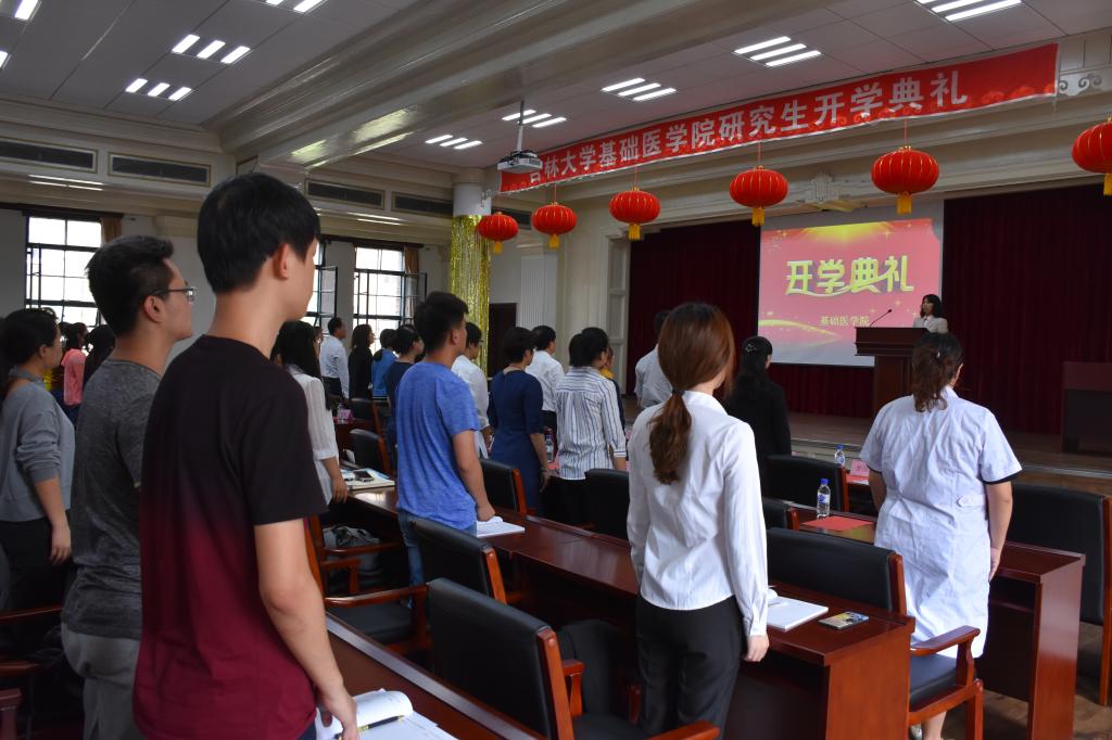 制度,保证个人安全。随后,导师代表刘佳梅教授教导同学们要学会明确目标,制定规划,善于总结,不断进取。接着,新生代表王蕴凤博士分享了自己的学习经验,鼓励大家奋勇前进。典礼最终在雄壮的校歌声中圆满结束。