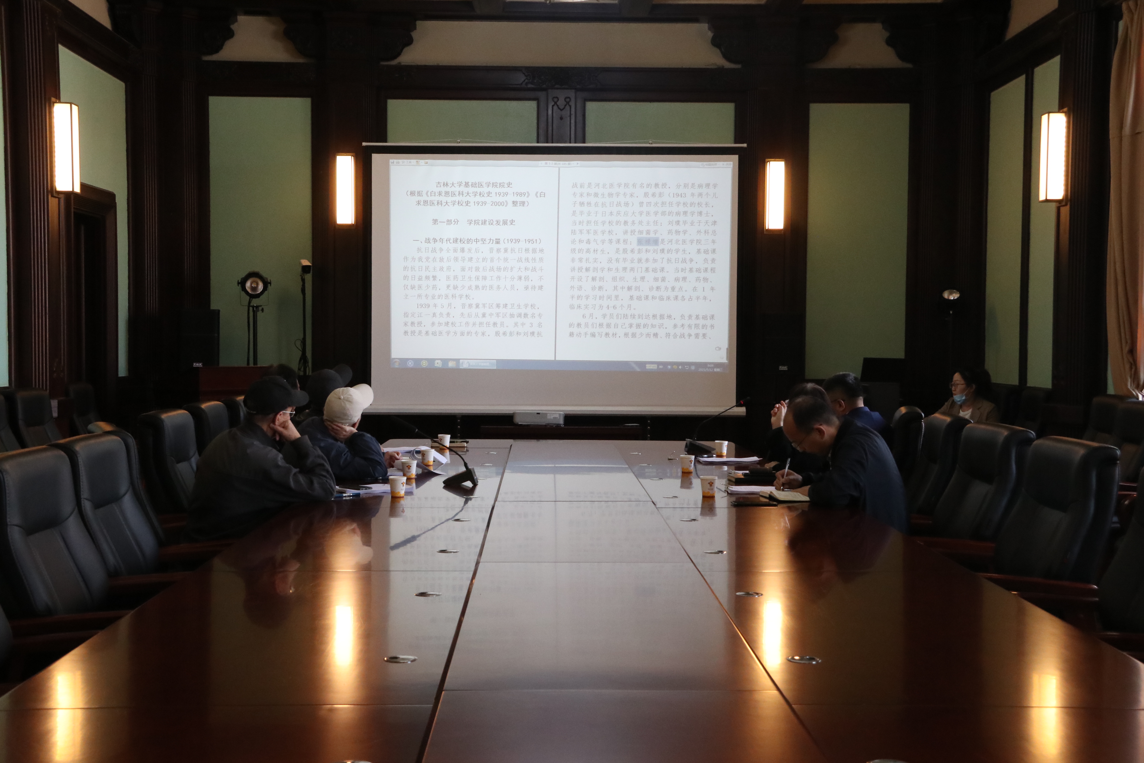 史工作给与充分肯定和高度评价,同时也指出部分与修正意见、建议。李玉林校长指出:应从党史学习角度完善院史编撰,并进一步挖掘老一代医学家、教育家、科学家和他们的感人事迹,更好的继承和弘扬白求恩精神;吴家祥校长指出:编撰工作既要联系实际,又要尊重历史,不能丢弃七十年来建立的奋斗精神,同时也表明梳理建校、建院的过程就是学习党史的过程;钟国赣校长指出编撰院史一定要精准写清楚各阶段历史。