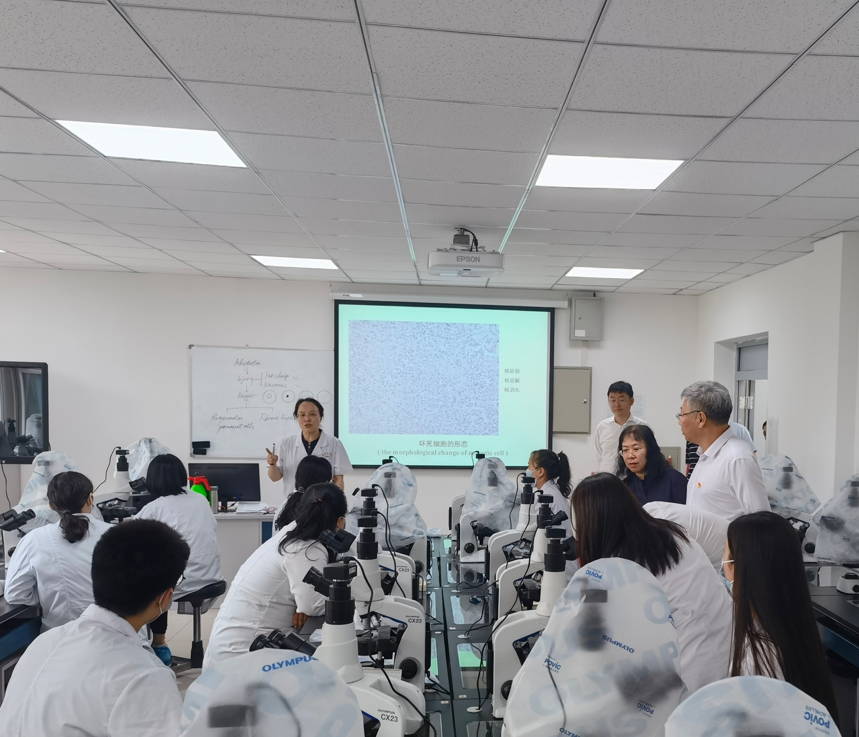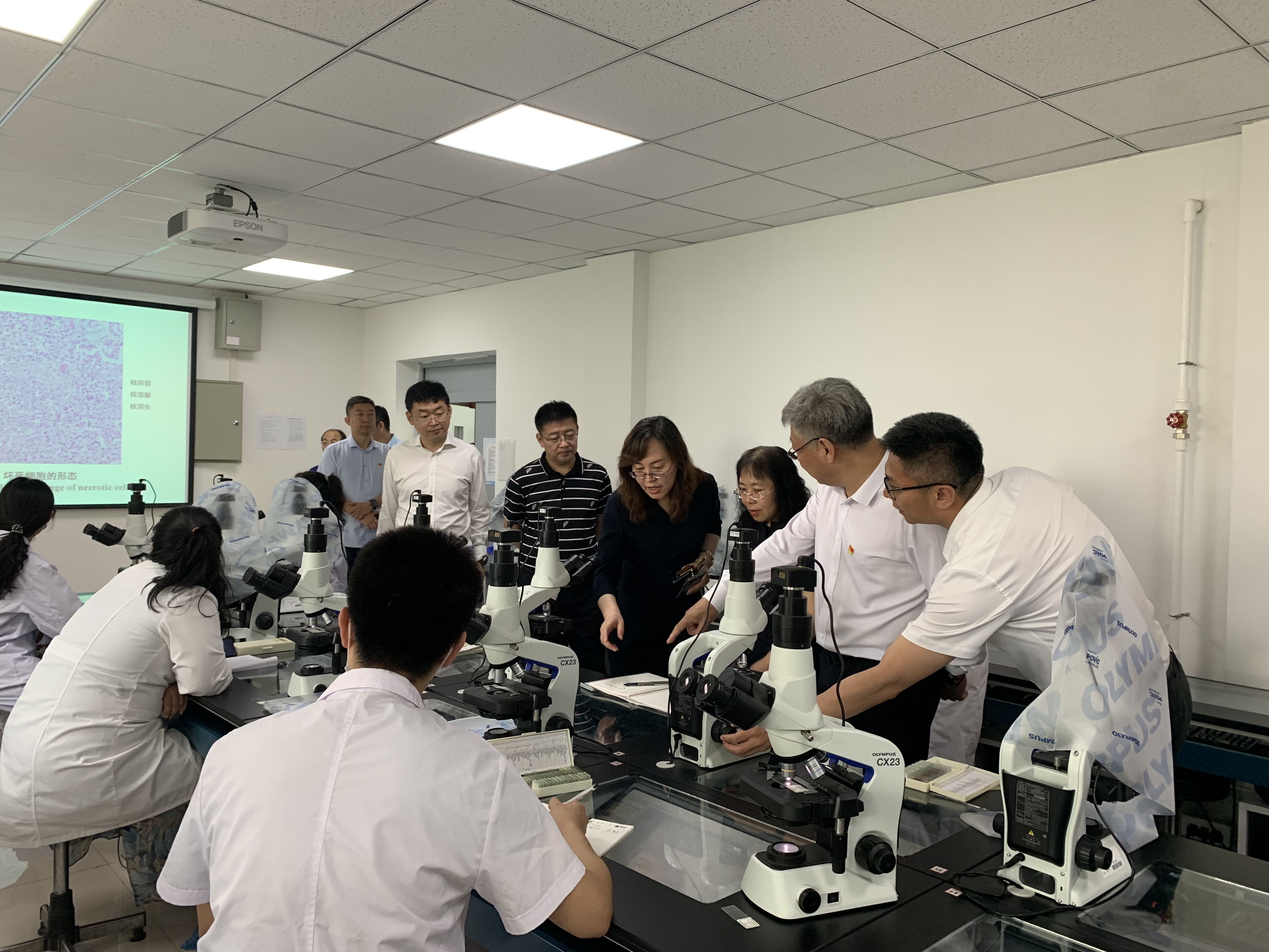 院长王放的工作汇报,随后,走进实验室向师生表达问候。在可移动实验平台,于蕾老师和学生们正在做的家兔呼吸运动的调节手术演示实验,学生可通过清晰的大屏幕看到手术演示全过程,真正实现互联互通,实时互动。在病理实习课堂,观摩了何旭老师“损伤的修复”课程,观看了学生的实验演示并亲切问候同学们的学习状况,病理生物学教育部重点实验室主任、副院长辛颖向冯书记介绍了病理学形态实验的相关情况。冯书记对同学们的实操能力给予了充分肯定。在分子生物学实验室,老师正在带领同学们进行转基因斑马鱼克隆实验。斑马鱼是国际上用于快速研究人类疾病信号传导途径、有效药物高通量筛选的最佳模式生物之一。冯书记对葡京娱乐城