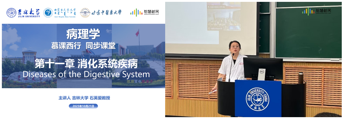病理学系石英爱教授主讲。课堂采用"理论讲授+临床案例解析+实时互动"的教学模式,通过高清影像传输技术,将吉林大学的优质教学资源实时输送至西部高校课堂。